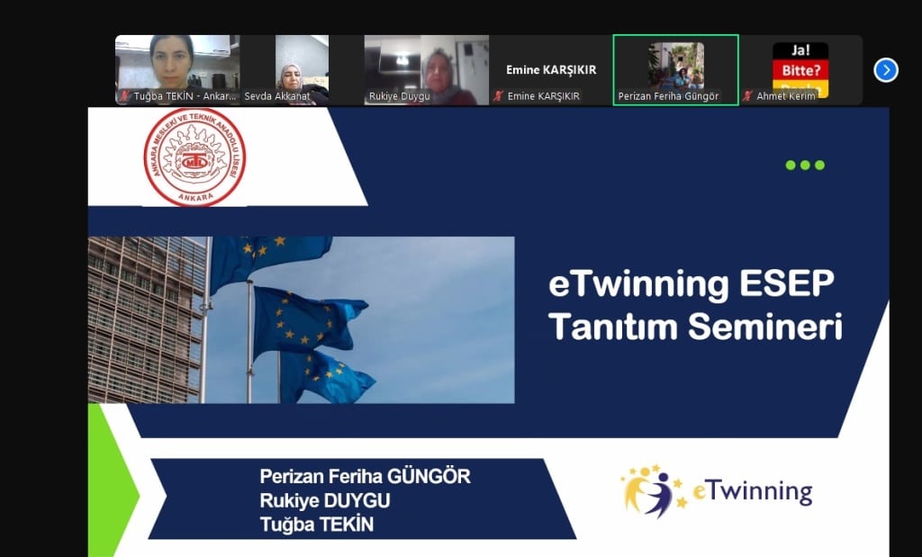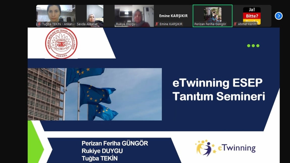 Ankara Mesleki ve Teknik Anadolu Lisesi’nde eTwinning faaliyetleri hız kesmeden devam ediyor! Okulumuzun aktif eTwinner öğretmenleri Feriha Perizan GÜNGÖR, Rukiye DUYGU ve Tuğba TEKİN tarafından, öğretmenlerimize yönelik “eTwinning ESEP Tanıtım Semineri” düzenlendi.