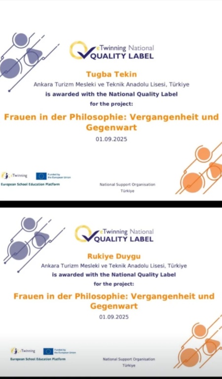 2024-2025 eğitim öğretim yılıında okulumuz öğretmenleri tarafından gerçekleştirildiği e-Twenning projemiz Ulusal Kalite Etiketi almaya hak kazanmıştır. Öğretmenlerimizi tebrik ediyoruz.